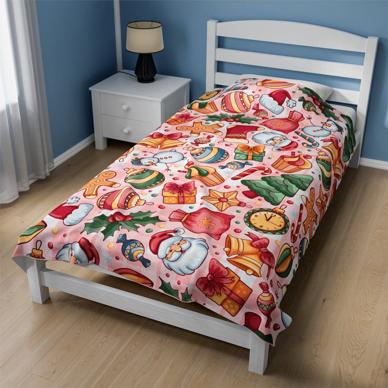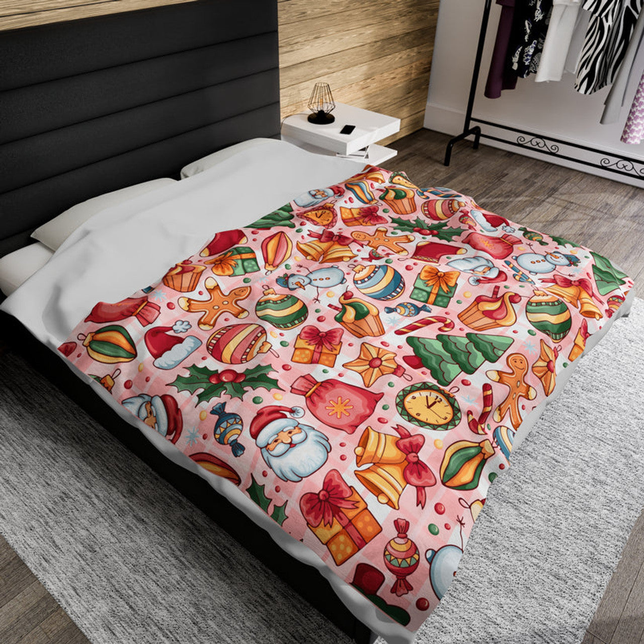 FUNSTUFFPRINT Gingerbread Christmas Velveteen Plush Blanket