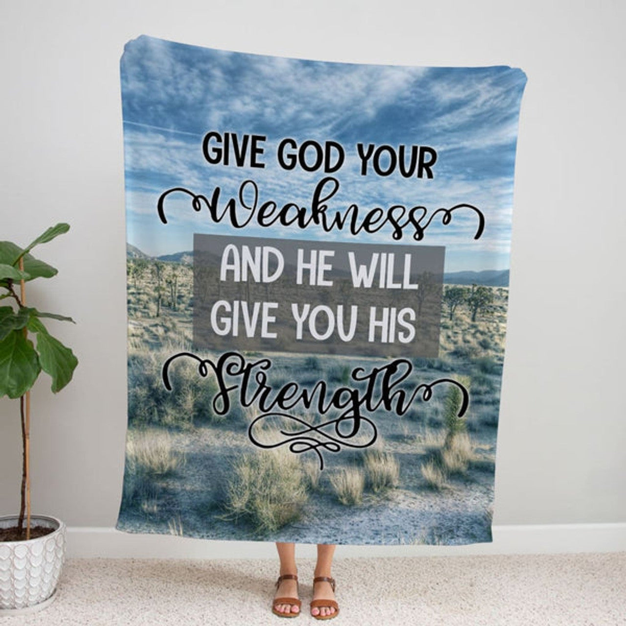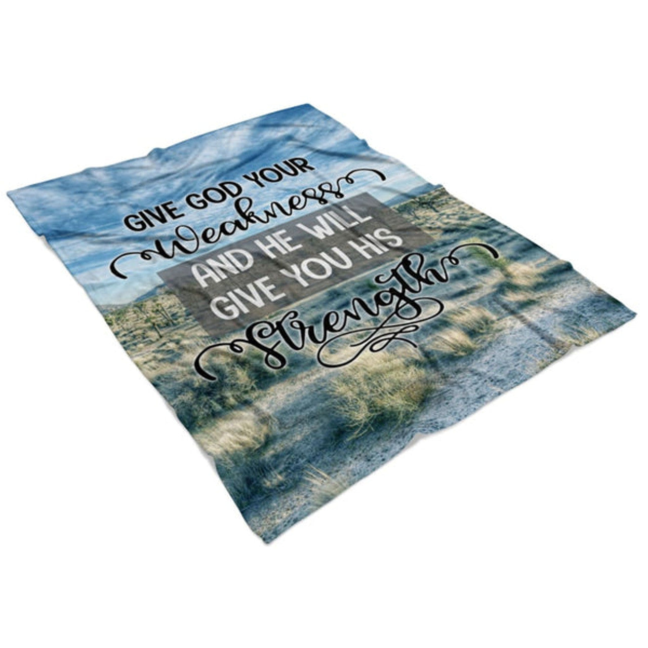 FUNSTUFFPRINT Give God Your Weakness And He Will Give You His Strength Fleece Blanket - Christian Blanket - Bible Verse Blanket