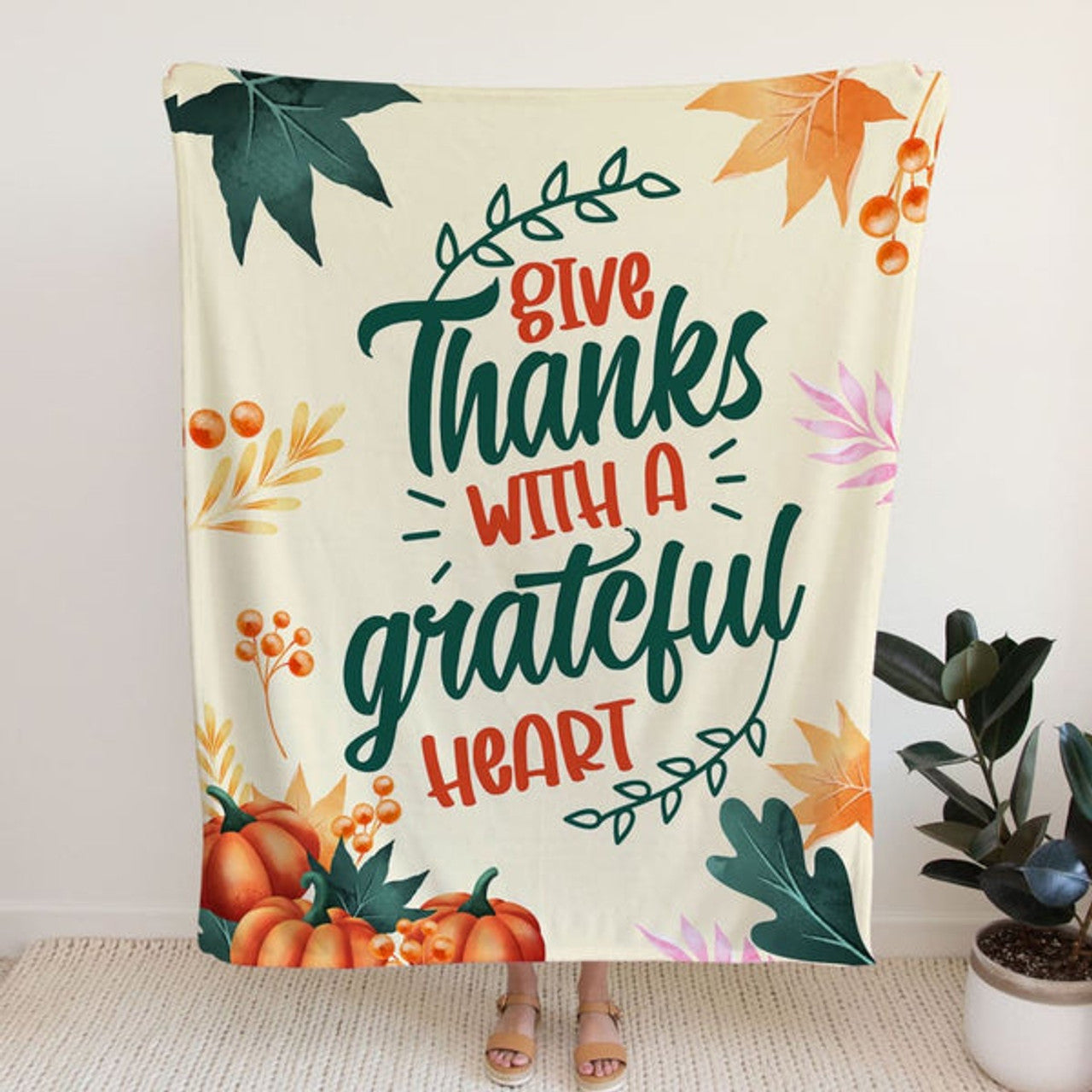 FUNSTUFFPRINT Give Thanks With A Grateful Heart 4 Fleece Blanket - Christian Blanket - Bible Verse Blanket