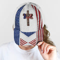 FUNSTUFFPRINT God Bless American Flag On Cross All Over Print Baseball Cap - Christian Hats For Men Women