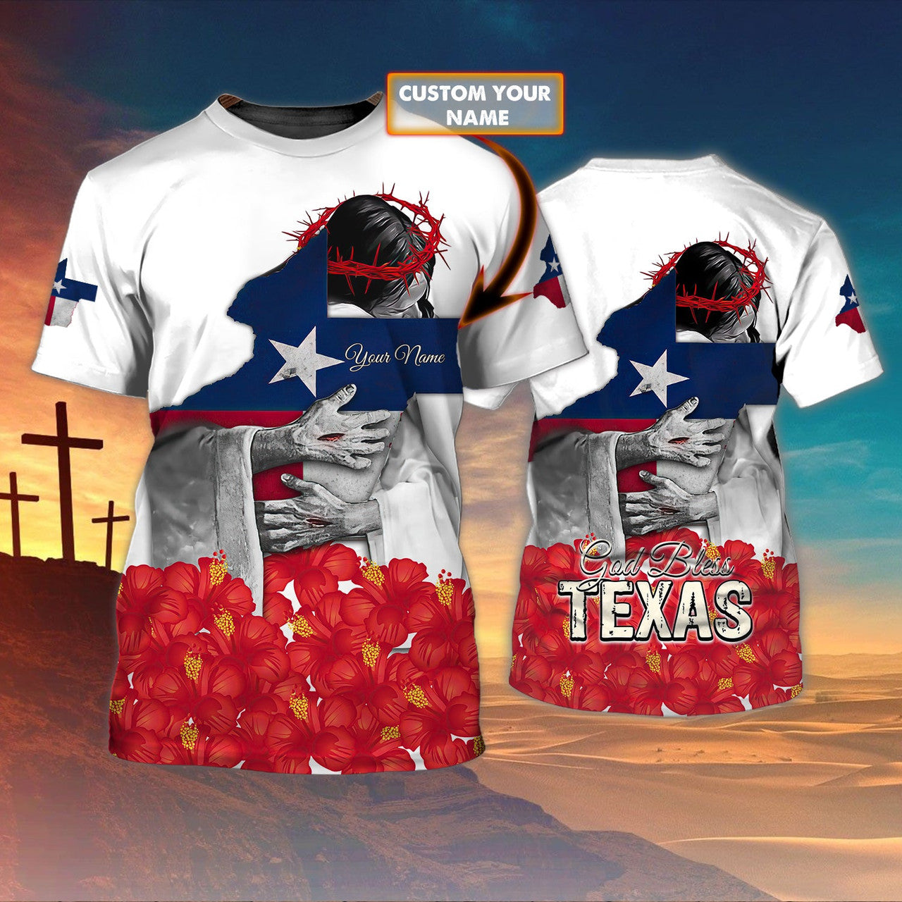 FUNSTUFFPRINT God Bless Texas - Personalized Name 3D T-Shirt