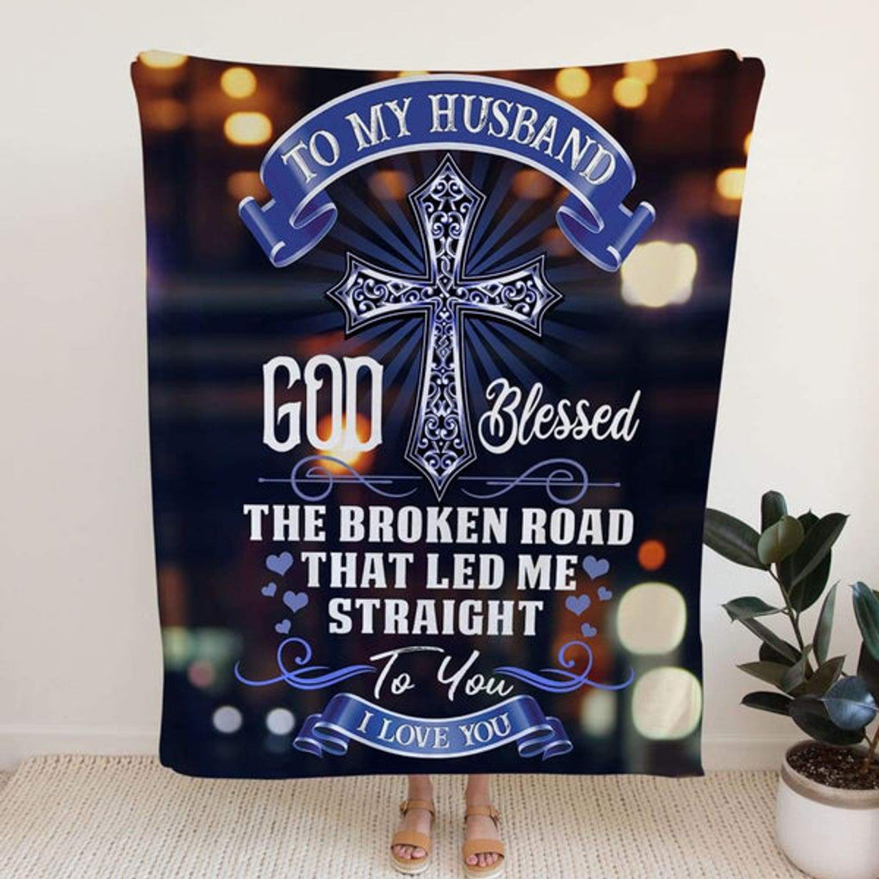 FUNSTUFFPRINT God Blessed The Broken Road That Led Me Straight To You Fleece Blanket - Christian Blanket - Bible Verse Blanket