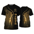 FUNSTUFFPRINT Golden Haircut & Shaves Barber Shop Tee Shirt Custom Barber Uniform Black & Red 3D T-shirt