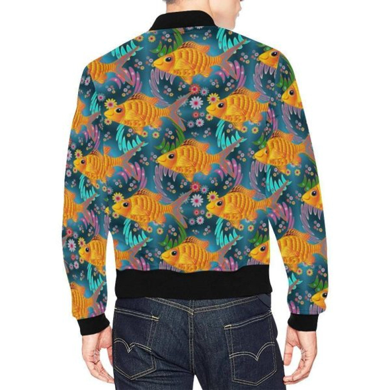 FUNSTUFFPRINT Goldfish Flower Pattern Print Men's 3D Bomber Jacket