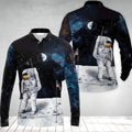 FUNSTUFFPRINT Golf Long Polo Shirt - Astronaut Moon Golf Men Polo Shirt, American Flag Long Polo Shirt