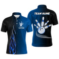 FUNSTUFFPRINT Gradient Black Blue bowling league Polo Shirt Size S-5XL