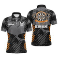 FUNSTUFFPRINT Grey Grunge Orange Skull Mens Darts Polo Shirt Size S-5XL