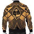 FUNSTUFFPRINT Guam Polynesian Men's Bomber Jacket - Guam Gold Seal with Polynesian Tattoo - Bomber Jacket