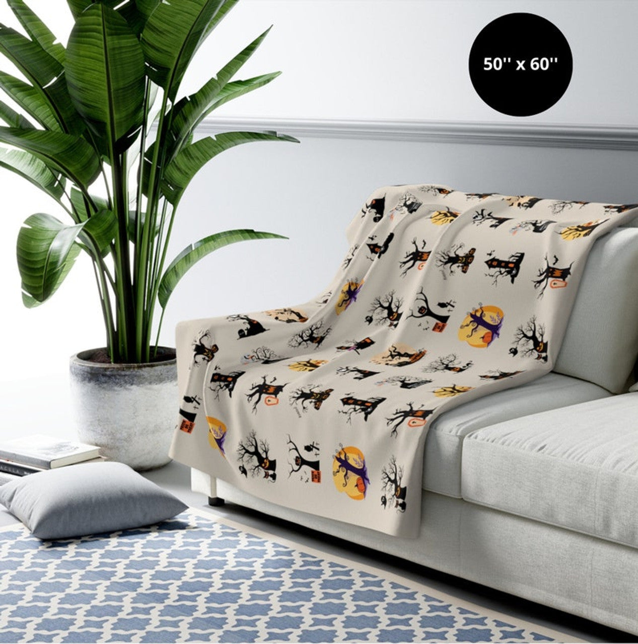 FUNSTUFFPRINT Halloween Blanket |Halloween Tree Throw |Spooky Tree Ghost Pumpkin Blanket| Halloween Home Decor| Halloween Gift |Autumn Fall Home Decor