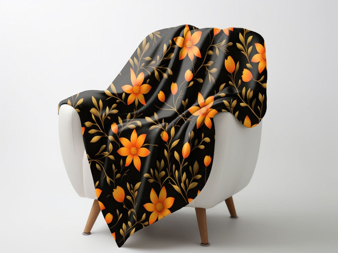 FUNSTUFFPRINT Halloween Flower blanket, Orange Floral blanket, Fall blanket, Halloween throw, Autumn Throw Blanket Halloween decor Fall Decor Autumn Decor