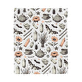 FUNSTUFFPRINT Halloween Velveteen Plush Blanket, Throw Blanket for Halloween Decor, Farmhouse Spooky Blanket, Witchy Gifts, Crystals and Flowers