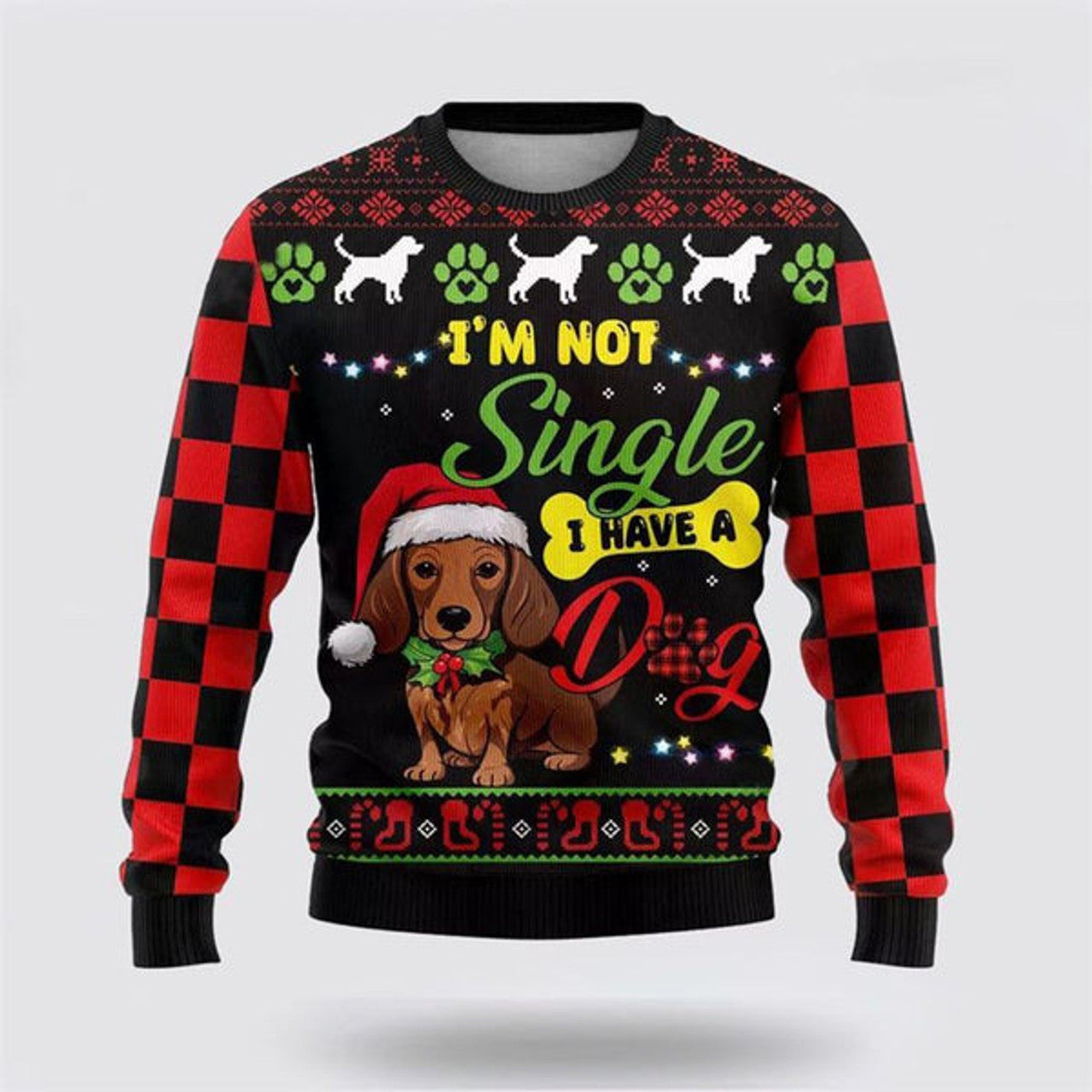 FUNSTUFFPRINT Happy Dachshund Dog Ugly Christmas Sweater For Men And Women, Gift For Christmas, Best Winter Christmas Outfit Ugly Sweater