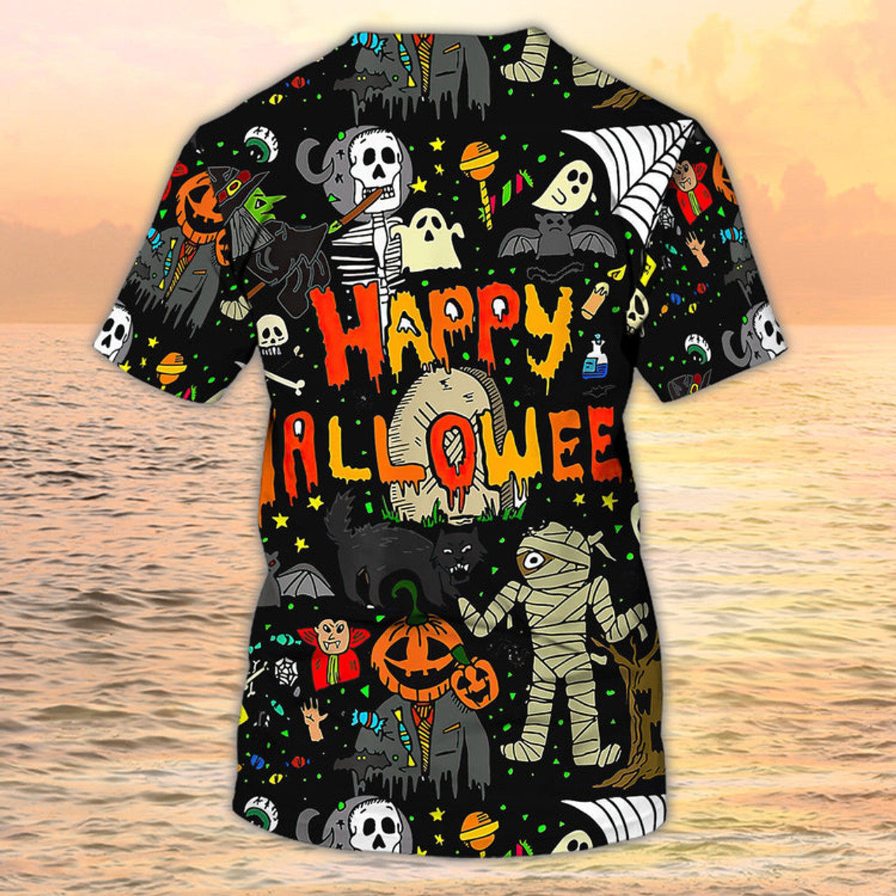 FUNSTUFFPRINT Happy Halloween 3D All Over Print T-Shirt Full Of Ghost On Halloween Shirts 3D T-shirt
