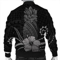 FUNSTUFFPRINT Hawaii Polynesian Pineapple Hibiscus Bomber Jacket - Gray - AH - R Bomber Jacket