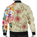 FUNSTUFFPRINT Hawaii Triple Marble Turtle Polynesian Hibiscus Bomber Jacket - AH - Benjamin Style - Beige - R Bomber Jacket