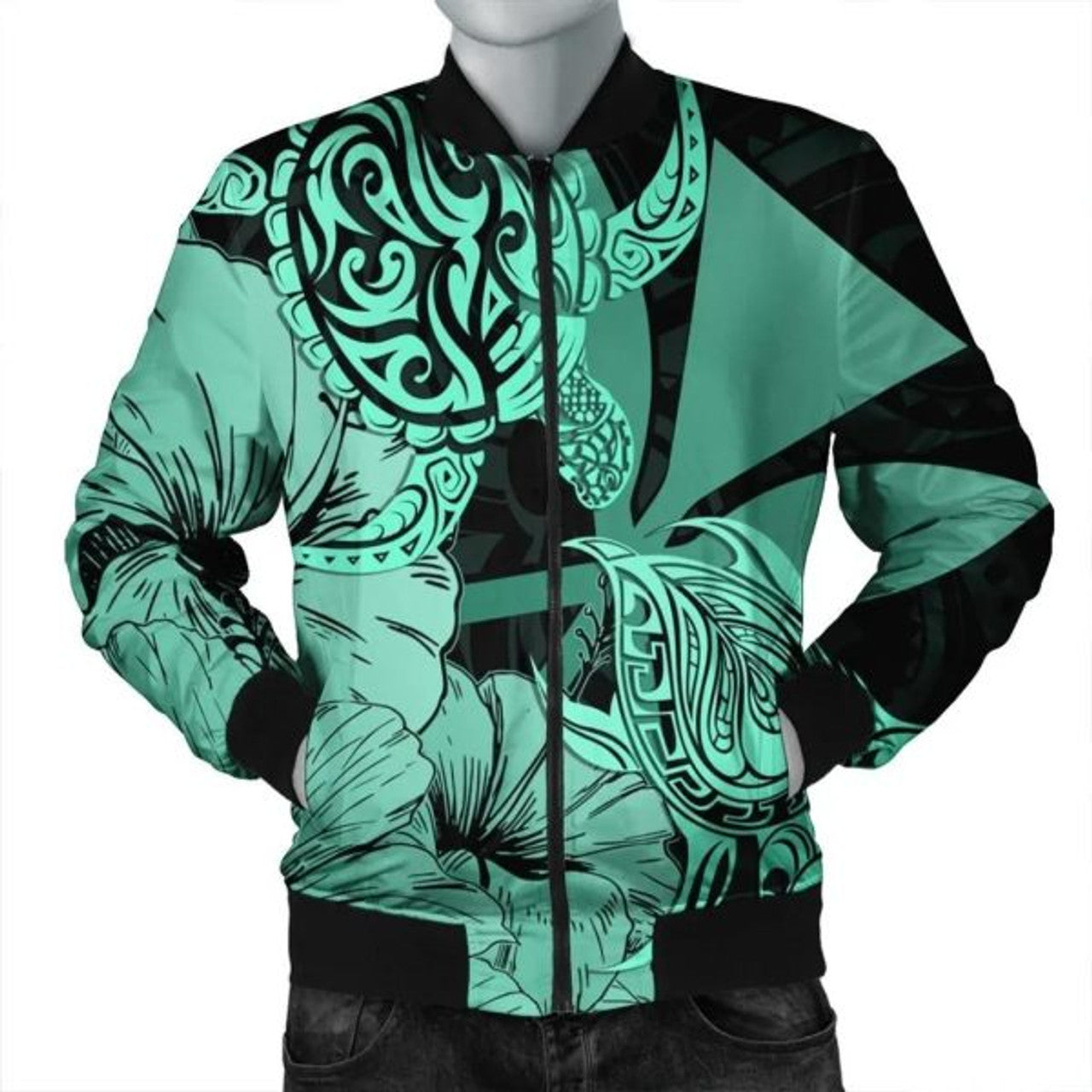 FUNSTUFFPRINT Hawaii Turtle Bomber Jacket Polynesian Hibiscus