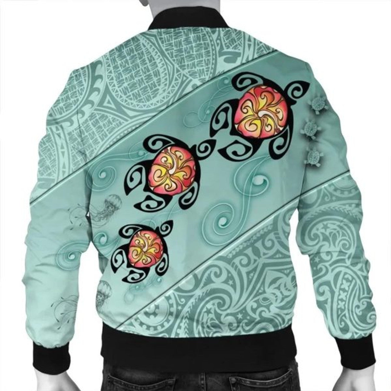 FUNSTUFFPRINT Hawaii Turtle Swimming Tribal Polynesian Bomber Jacket