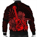 FUNSTUFFPRINT Hawaii Ukulele Flower Bomber Jacket - Red - AH - R Bomber Jacket