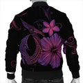 FUNSTUFFPRINT Hawaiian Fish Hook Hibiscus Plumeria Polynesian Bomber Jacket - Pink - AH - R Bomber Jacket