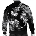 FUNSTUFFPRINT Hawaiian Hammerhead Shark Hibiscus White Polynesian Bomber Jacket - AH - R Bomber Jacket