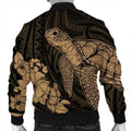 FUNSTUFFPRINT Hawaiian Hibiscus Memory Turtle Polynesian Bomber Jacket Gold - AH - JR Bomber Jacket