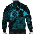 FUNSTUFFPRINT Hawaiian Hibiscus Sea Turtle Swim Polynesian Bomber Jacket - Blue - AH - R Bomber Jacket