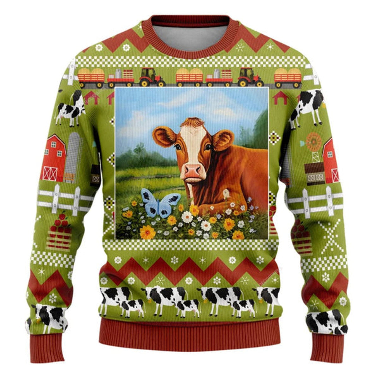 FUNSTUFFPRINT Hereford Cows Christmass Ugly Christmas Sweater, Farm Sweater, Christmas Gift, Best Winter Outfit Christmas Ugly Sweater