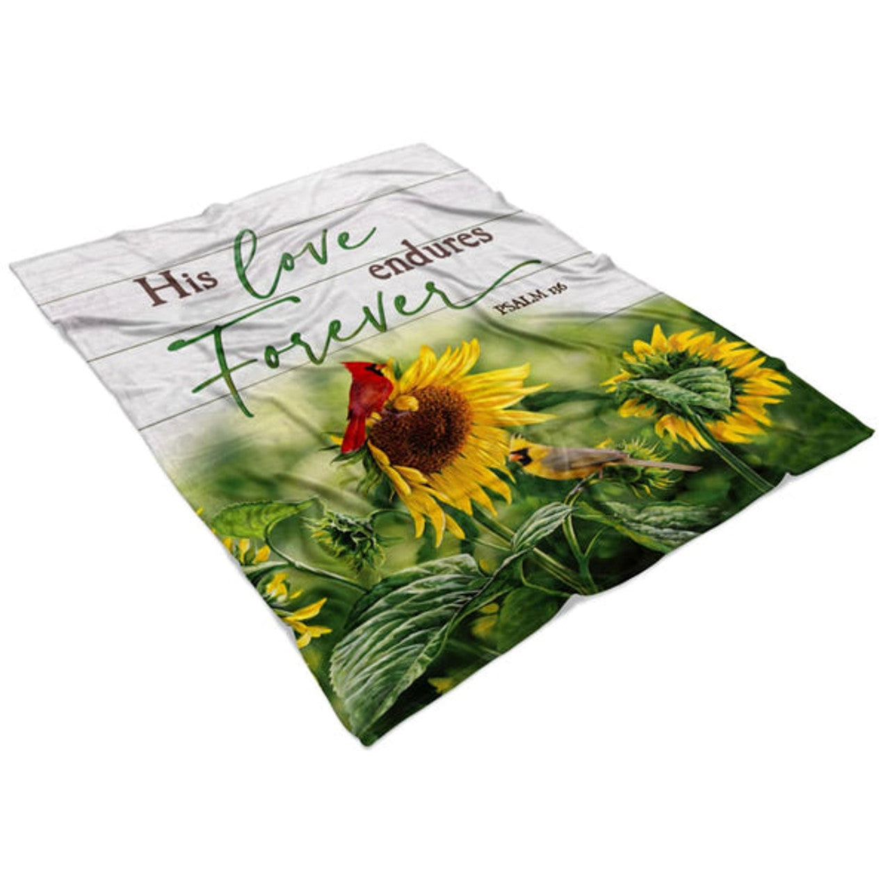 FUNSTUFFPRINT His Love Endures Forever Psalm 136 Fleece Blanket - Christian Blanket - Bible Verse Blanket