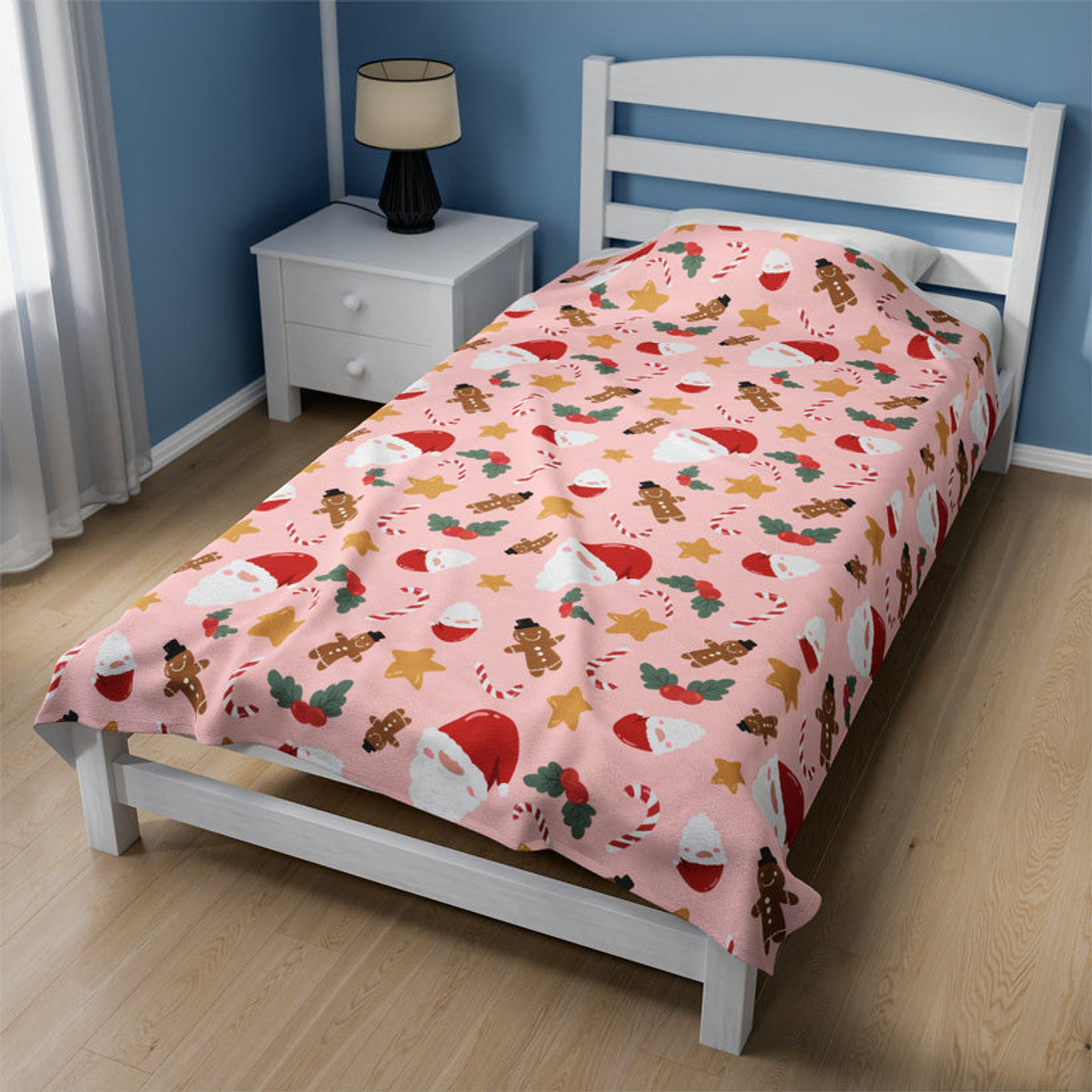 FUNSTUFFPRINT Holly Jolly Velveteen Plush Blanket