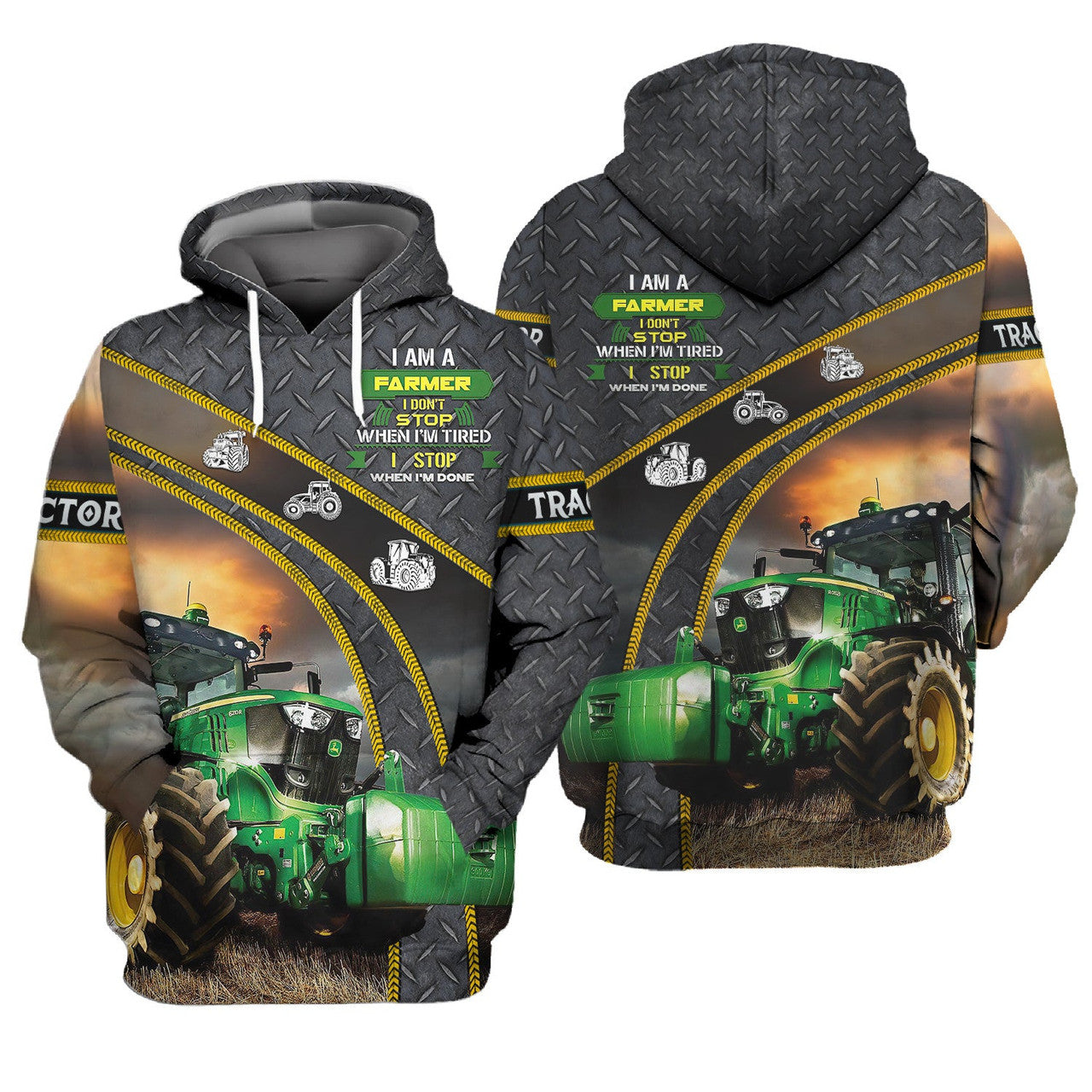 FUNSTUFFPRINT I Am A Farmer I Don’t Stop When I’m Tired I Stop When I’m Done 3D Hoodie and Zip Hoodie