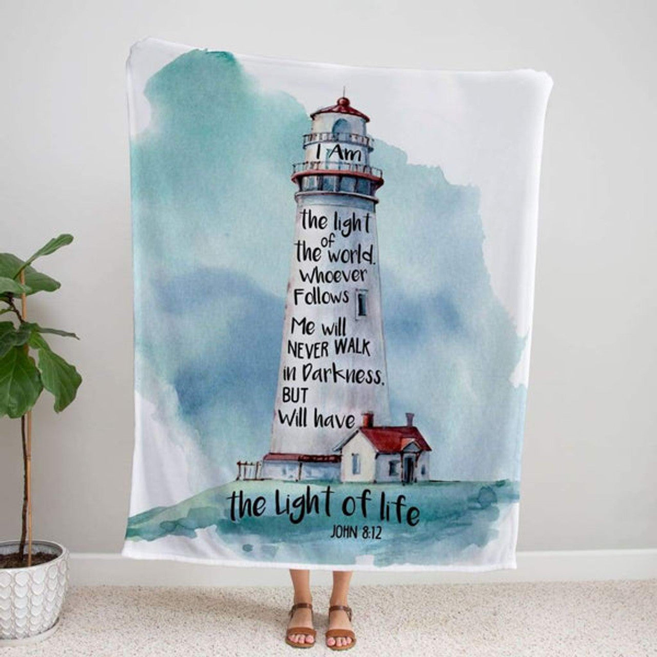 FUNSTUFFPRINT I Am The Light Of The World John 812 Fleece Blanket - Christian Blanket - Bible Verse Blanket