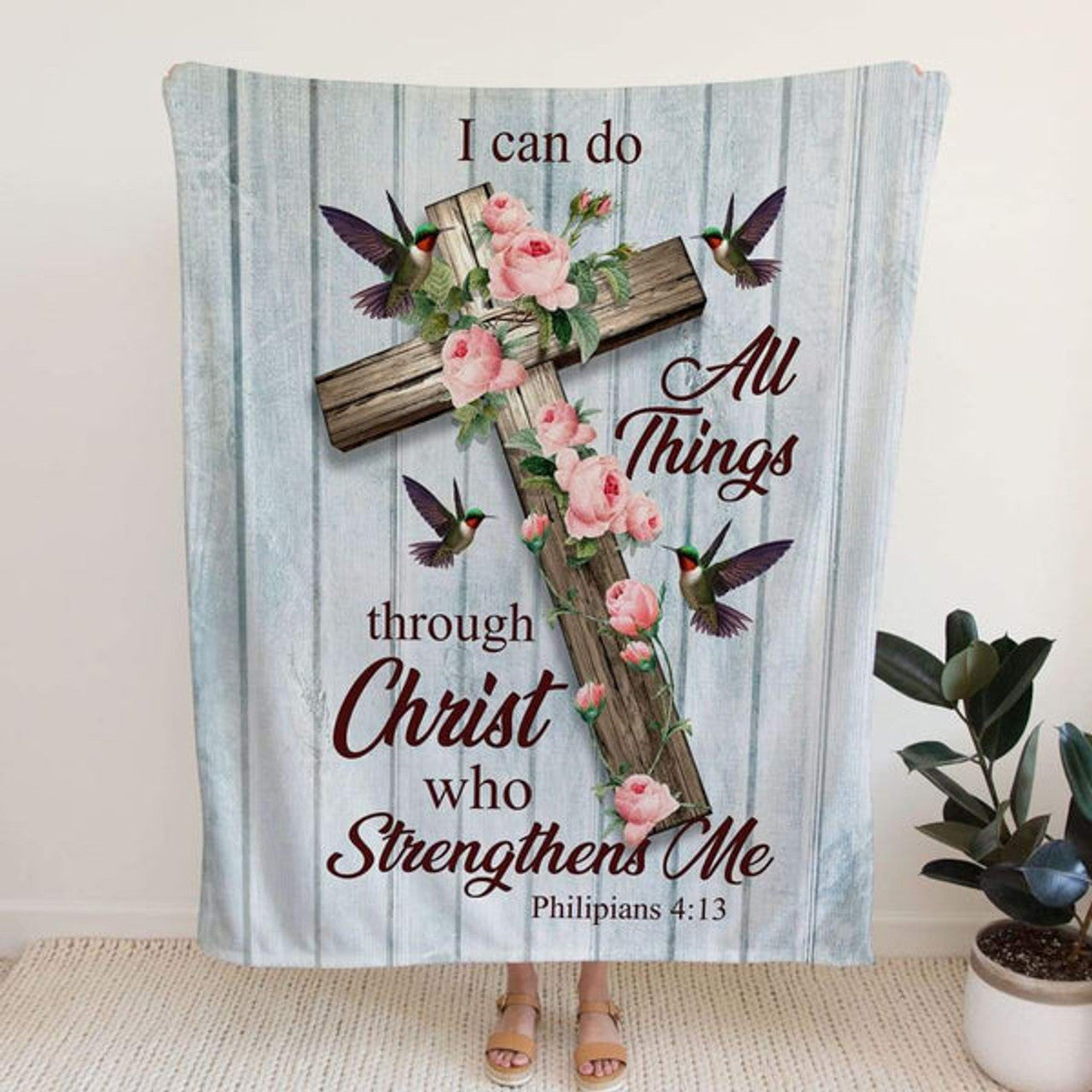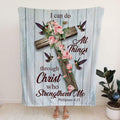 FUNSTUFFPRINT I Can Do All Things Through Christ Cross With Flowers Fleece Blanket - Christian Blanket - Bible Verse Blanket