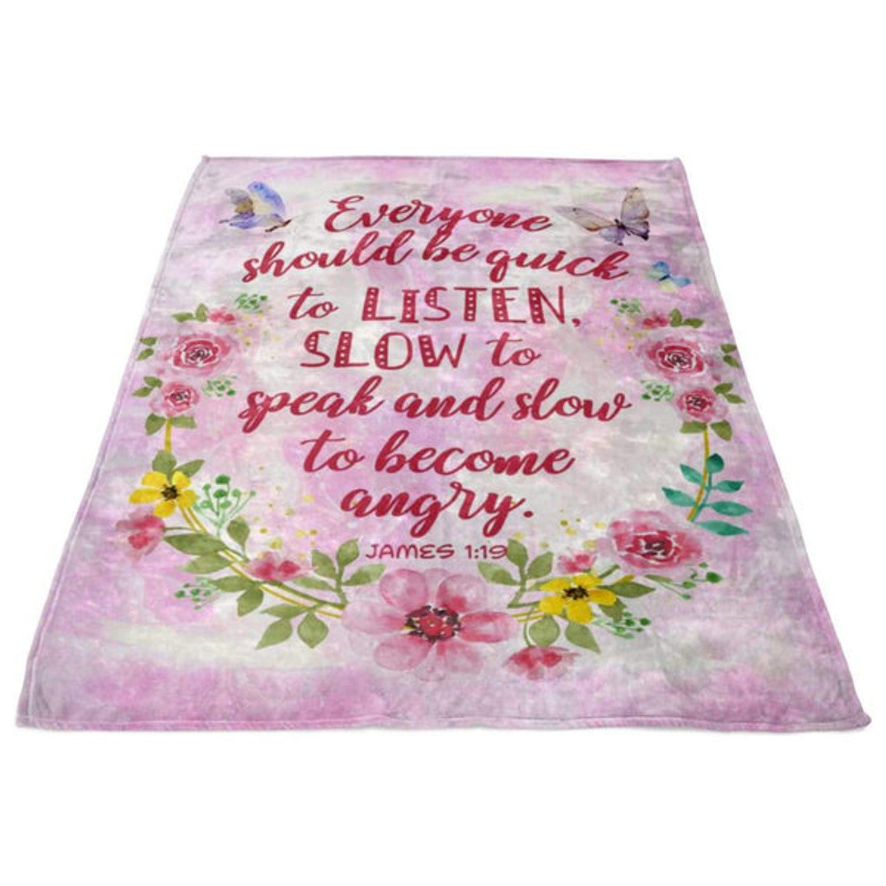 FUNSTUFFPRINT James 119 Be Quick To Listen Slow To Speak And Slow To Become Angry Fleece Blanket - Christian Blanket - Bible Verse Blanket