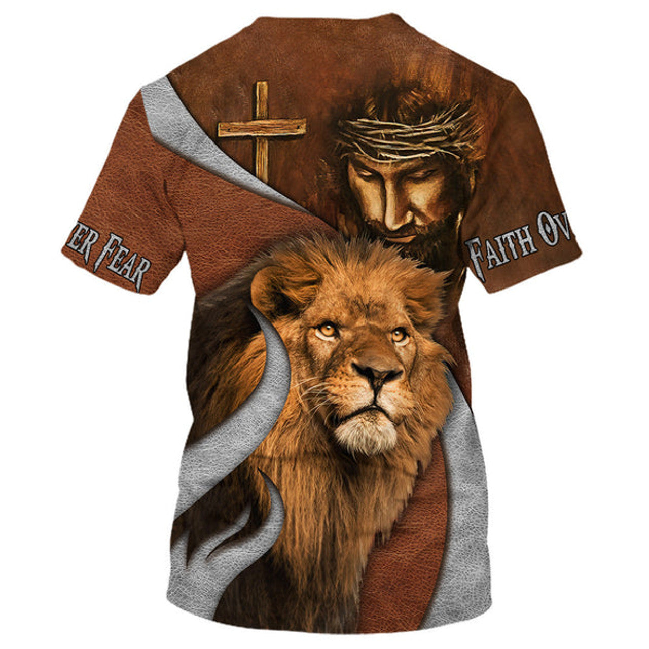 FUNSTUFFPRINT Jesus And The Lion Of Judah Shirts - Faith Over Fear 3D All Over Printed Shirt for Men and Women 3D T-shirt