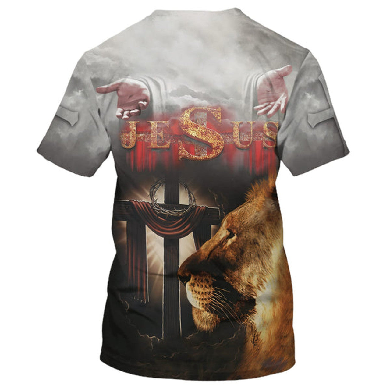 FUNSTUFFPRINT Jesus Arms Open Lion Cross 3D All Over Printed Shirt for Men and Women 3D T-shirt