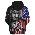 FUNSTUFFPRINT Jesus Christian Flag American - One Nation Under God Hoodie - Men & Women Christian 3D Hoodie and Zip Hoodie