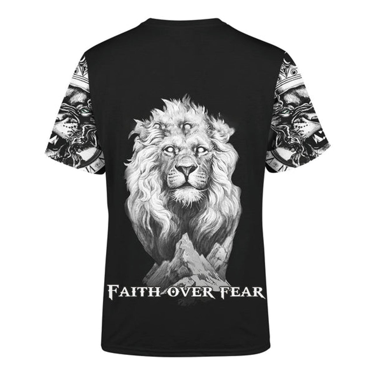 FUNSTUFFPRINT Jesus Lion Tattoo Faith Over Fear 3d Unisex Shirt - Christian 3D T-shirt