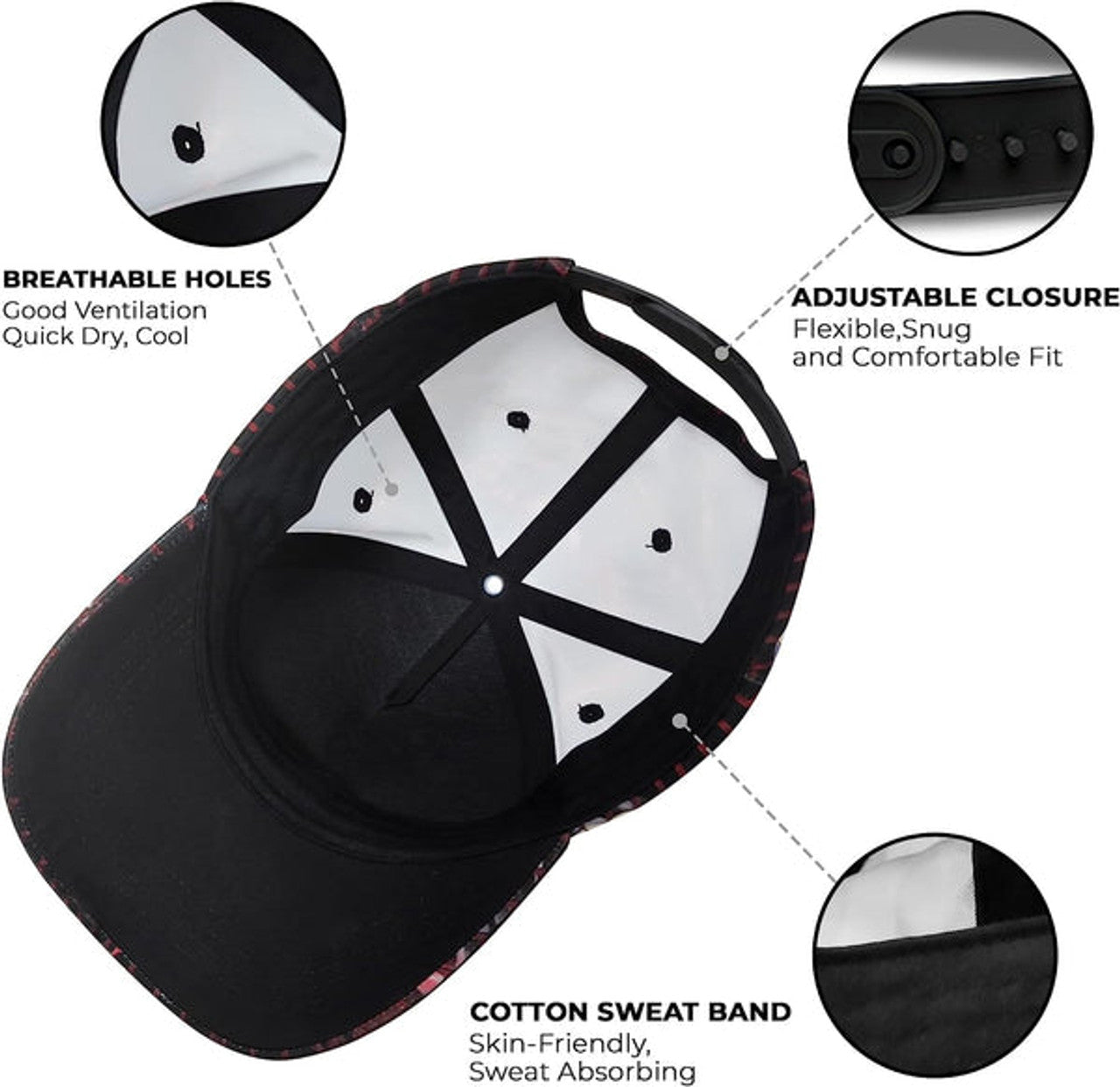 Comfort & Fit: Includes a soft sweatband inside for extra comfort and a sturdy plastic snap closure on the back for a custom, secure fit.