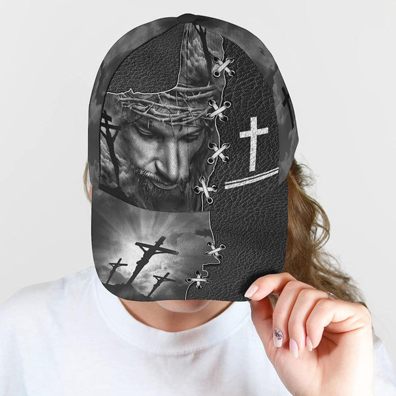 FUNSTUFFPRINT Jesus On The Cross Religion Crown Of Thorn All Over Print Baseball Cap - Christian Hats For Men Women