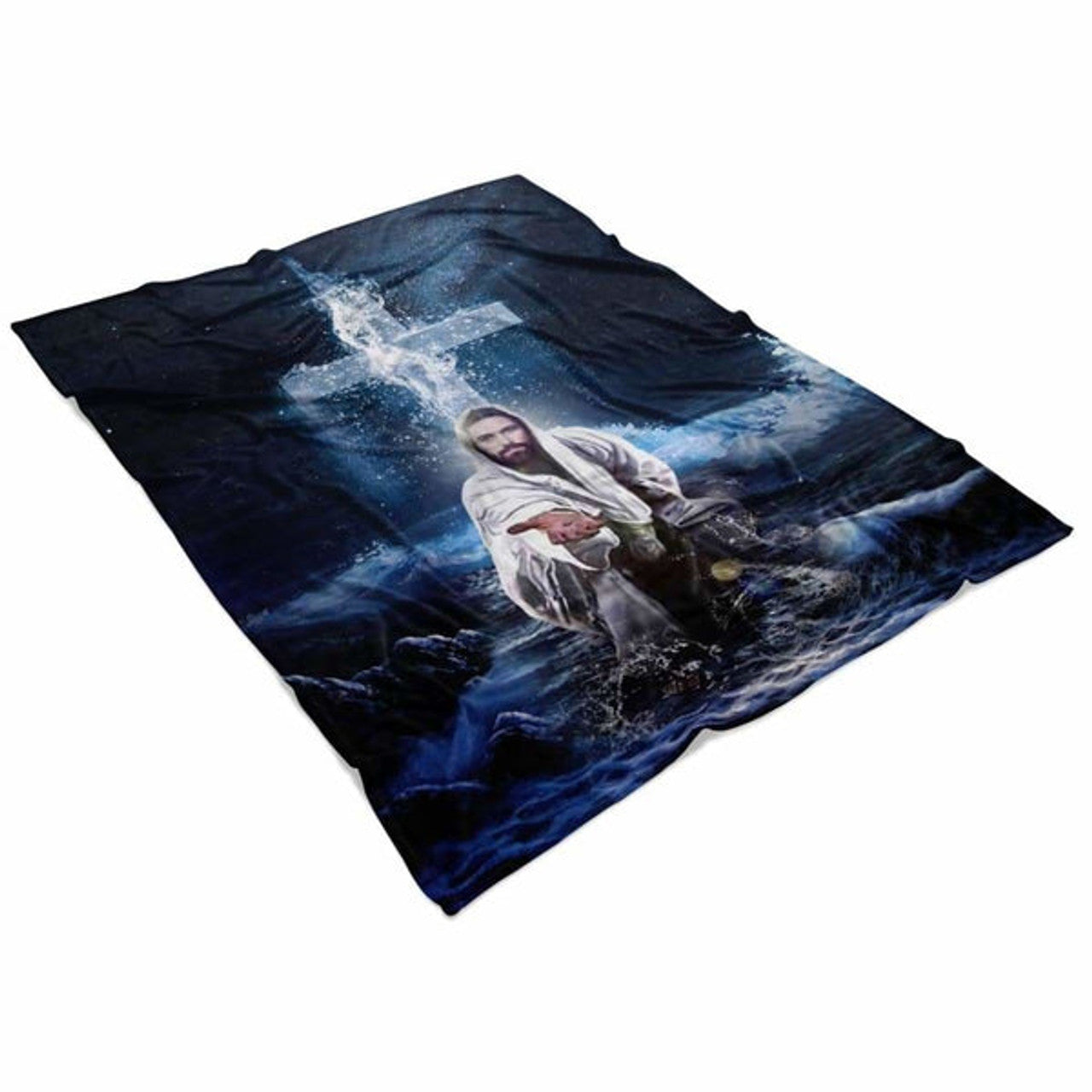 FUNSTUFFPRINT Jesus Outstretched Hands Saves 2 Fleece Blanket - Christian Blanket - Bible Verse Blanket