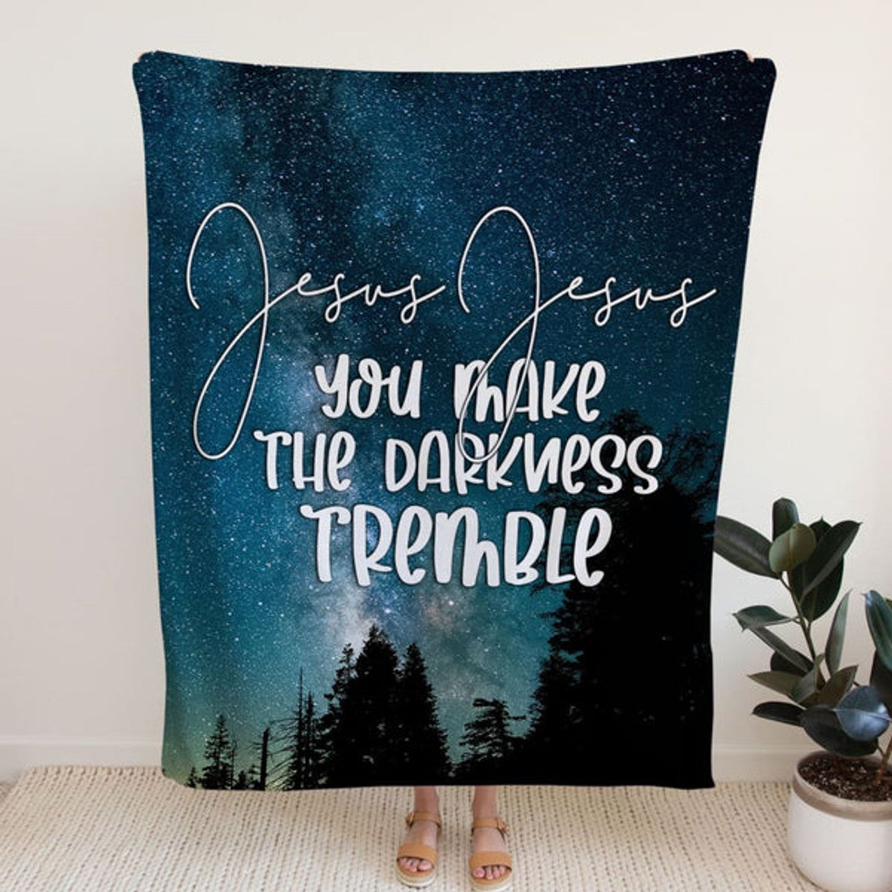 FUNSTUFFPRINT Jesus You Make The Darkness Tremble Fleece Blanket - Christian Blanket - Bible Verse Blanket
