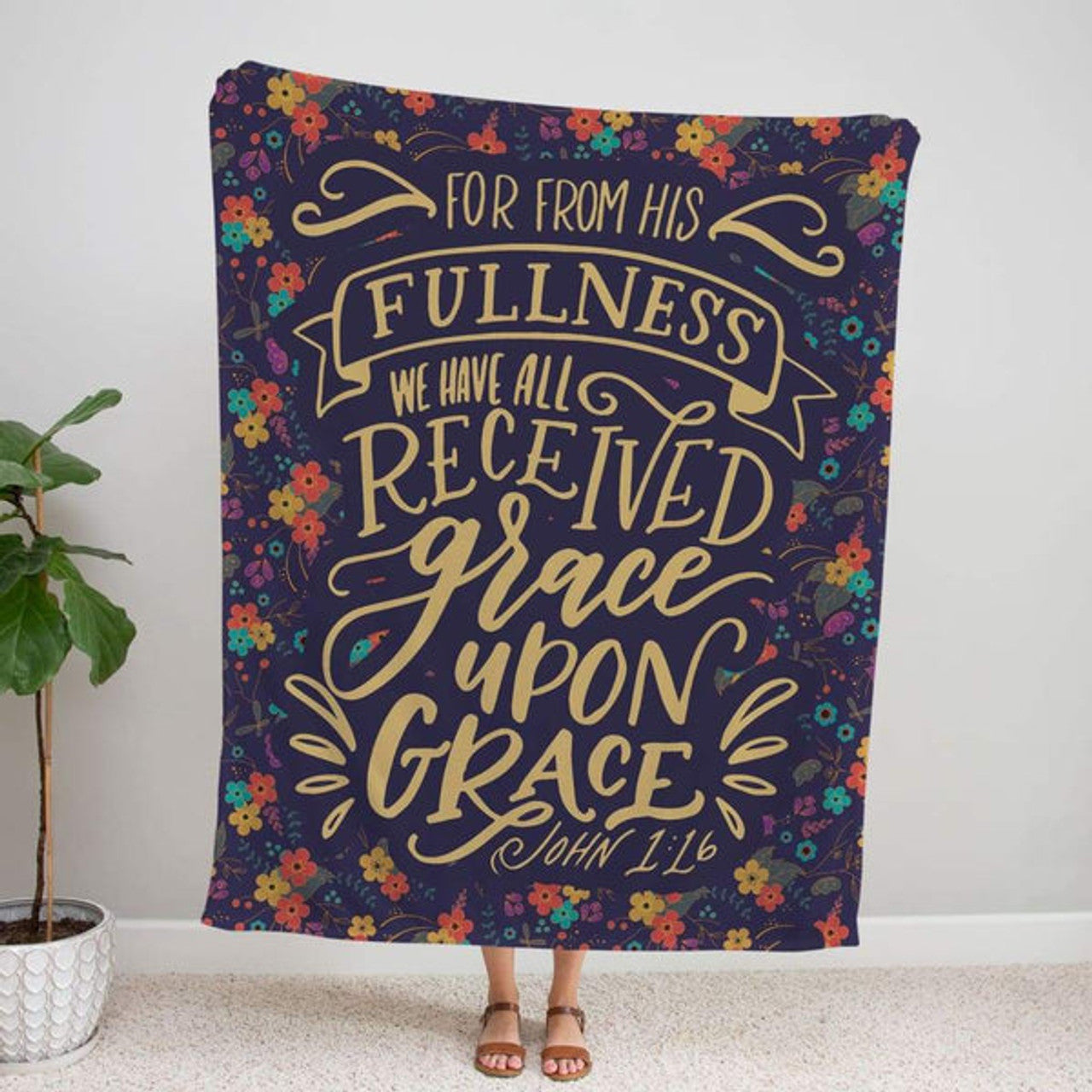 FUNSTUFFPRINT John 116 From His Fullness We Have All Received Grace Upon Grace Fleece Blanket - Christian Blanket - Bible Verse Blanket