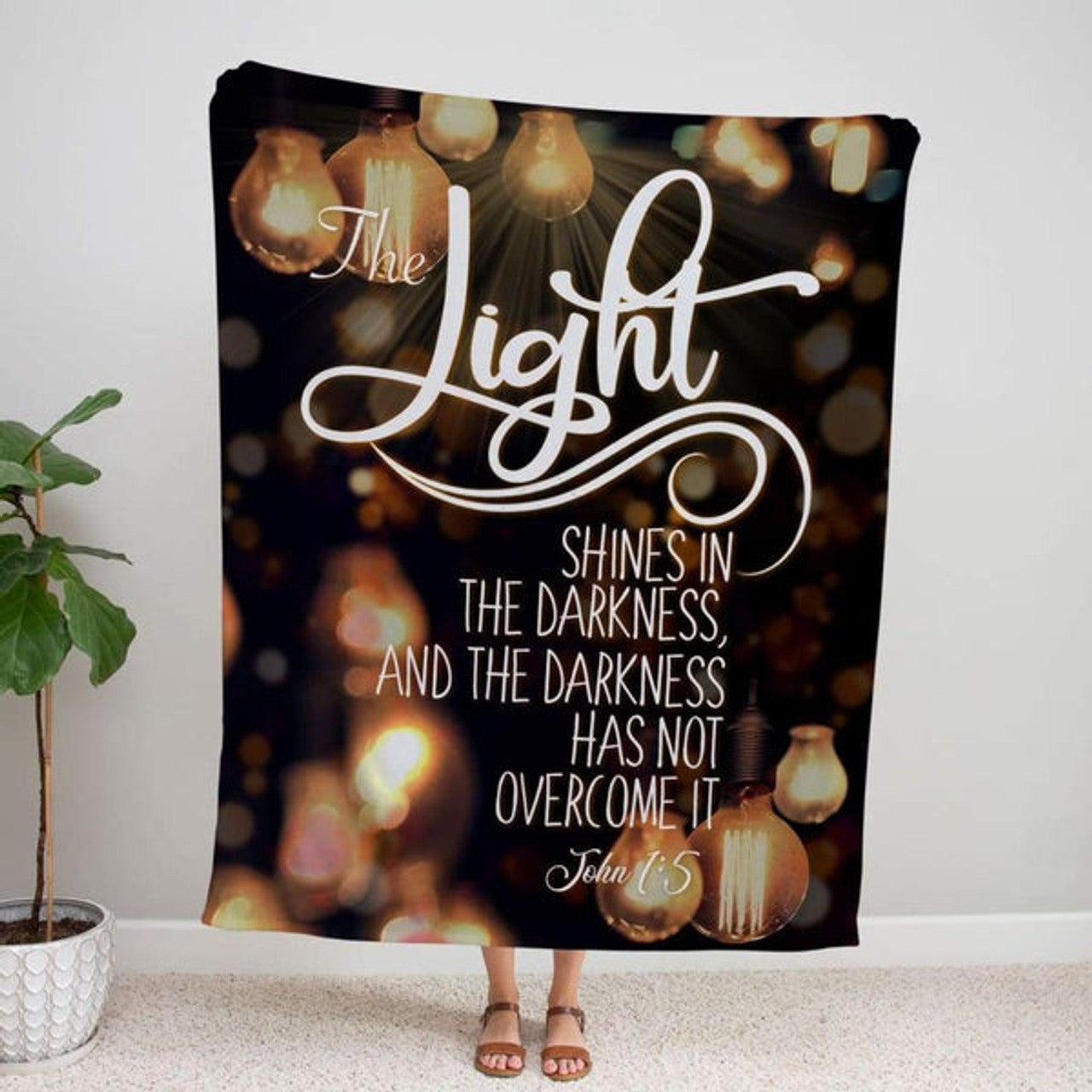 FUNSTUFFPRINT John 15 The Light Shines In The Darkness Fleece Blanket - Christian Blanket - Bible Verse Blanket