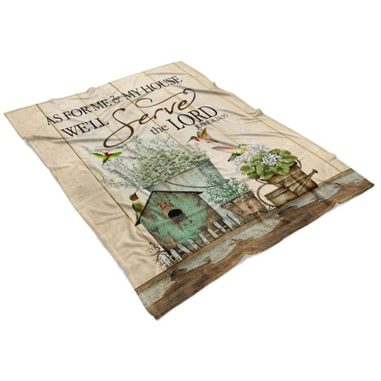 FUNSTUFFPRINT Joshua 2415 As For Me And My House Floral Hummingbird Fleece Blanket - Christian Blanket - Bible Verse Blanket