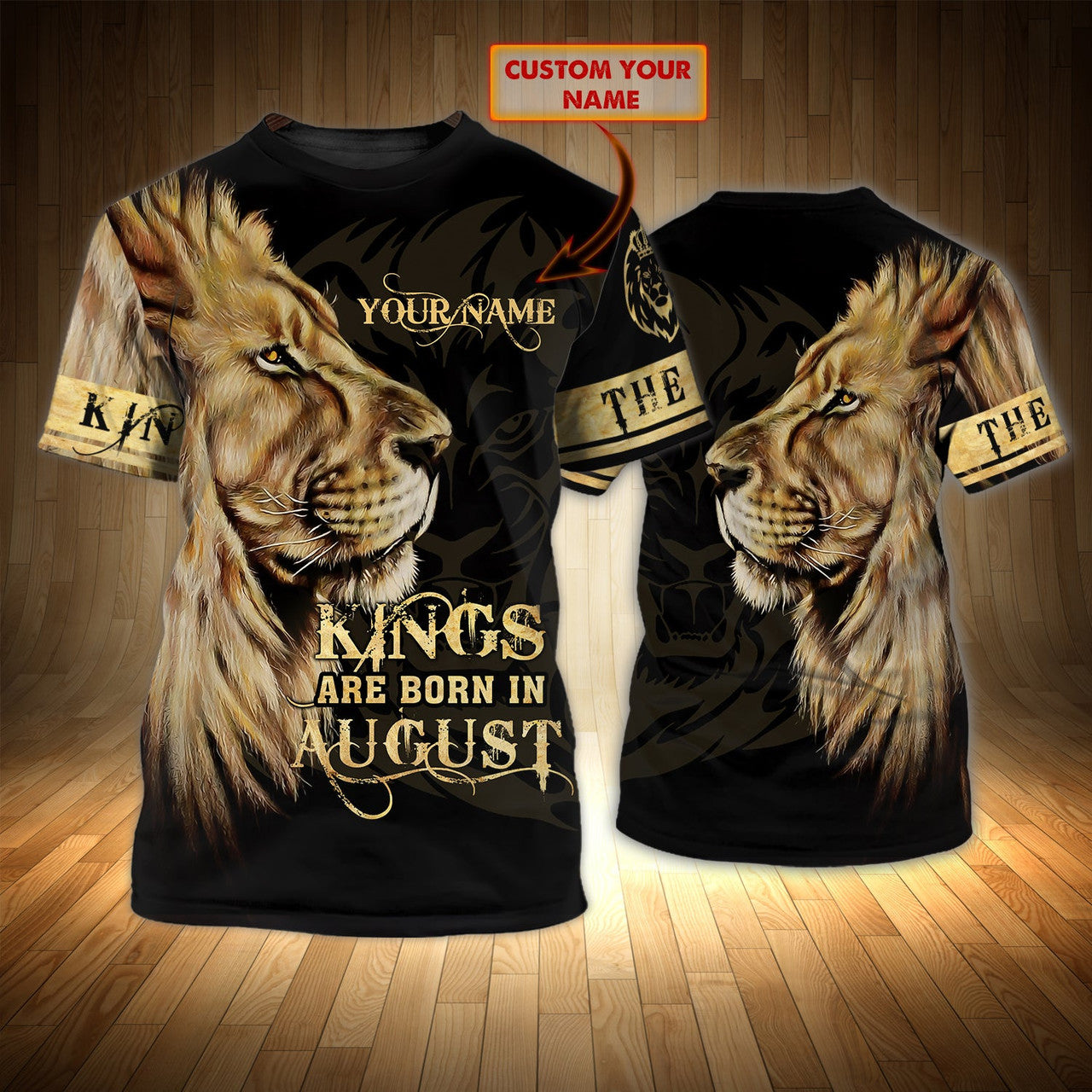 FUNSTUFFPRINT Kings Are Born In August - Personalized Name 3D T-Shirt