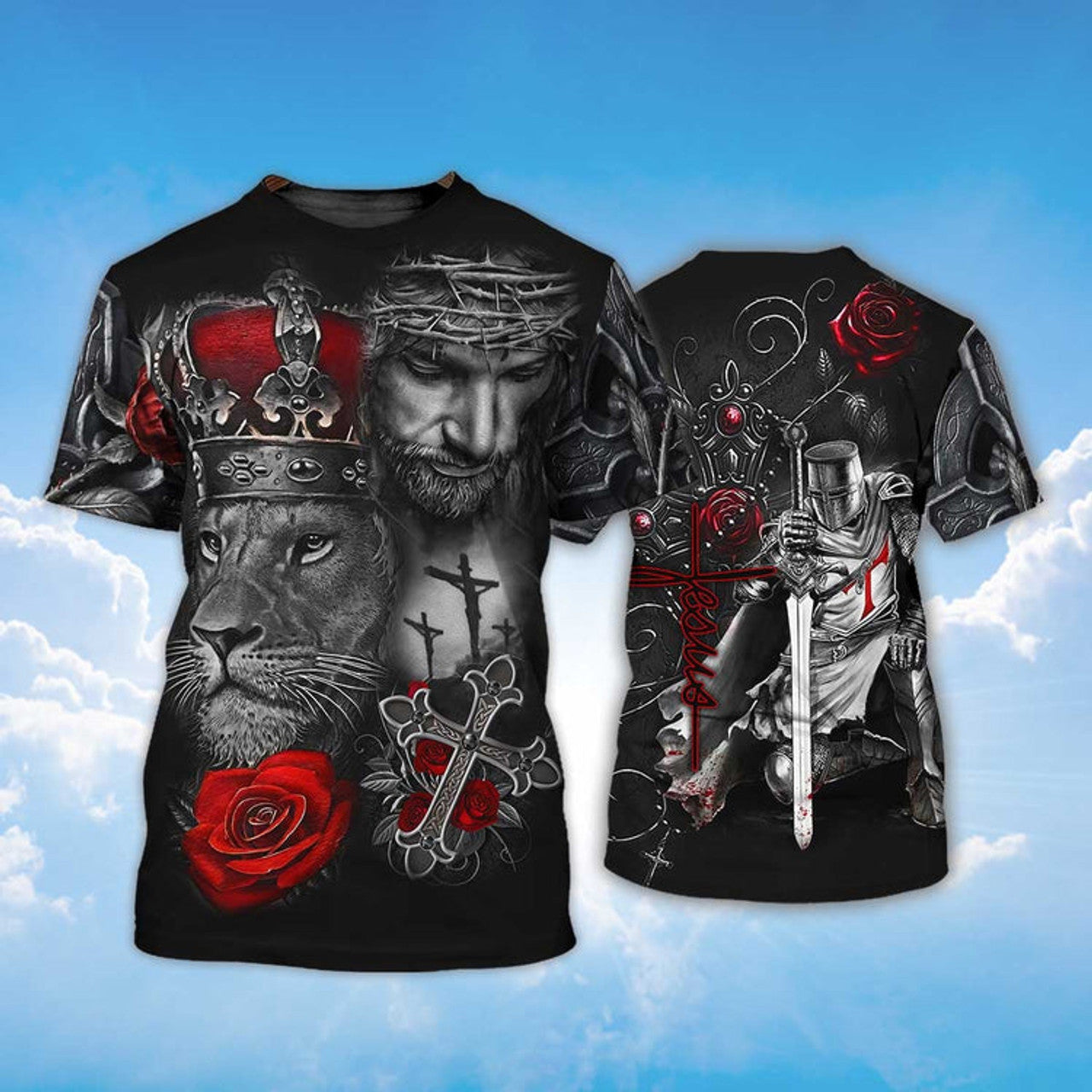 FUNSTUFFPRINT Knight Templar Lion A Child Of God 3D T-shirt