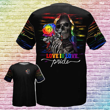 FUNSTUFFPRINT LGBT Skull Pride Rose Love Is Love 3D, LGBT Gift For Her LGBT Gift For Him, Shirt For Pride 3D T-shirt