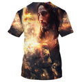 FUNSTUFFPRINT Lion And Jesus Picture Christian 3D T-shirt