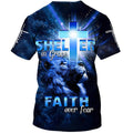 FUNSTUFFPRINT Lion Cross Shelter In Grace Faith Over Fear Christian 3D T-shirt