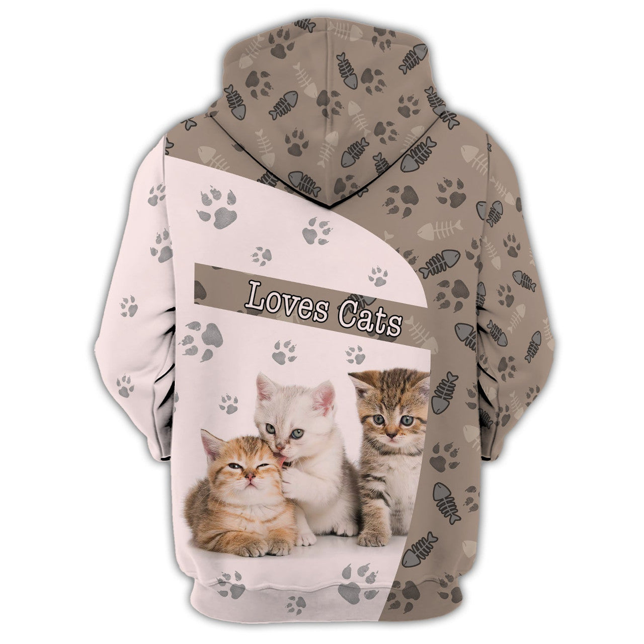 FUNSTUFFPRINT Loves Cats - Personalized Name 3D Hoodie and Zip Hoodie